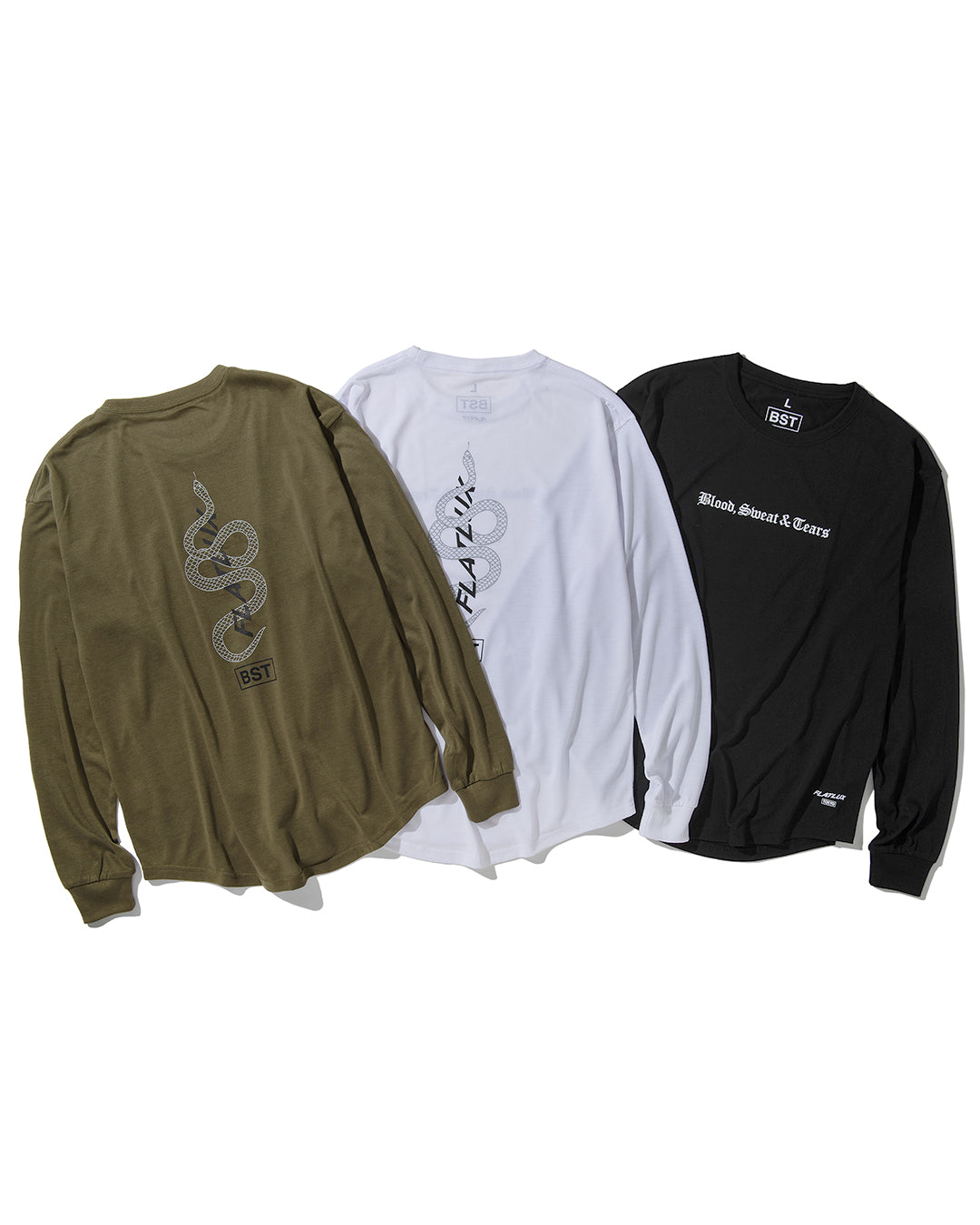 吸水速乾なのにコットンのような質感とラウンドした裾で、スポーツはもちろん普段使いも違和感ナシなロンT。蛇だけリフレクターで夜道のランも安心。